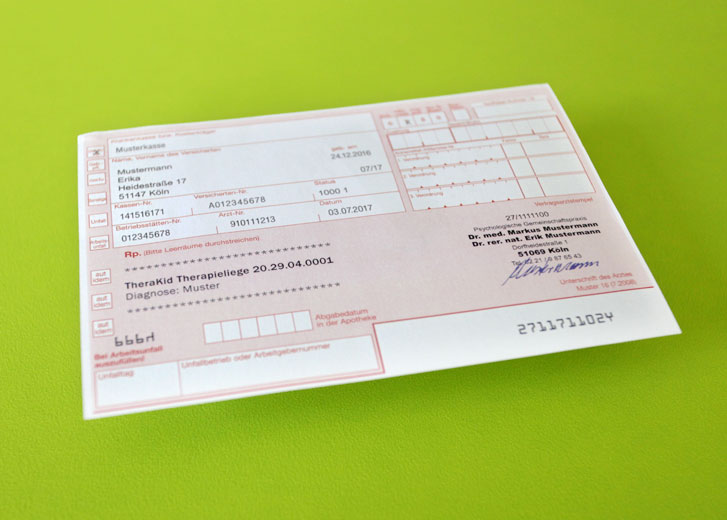 Ihr Kinder- oder Hausarzt stellt Ihnen ein Rezept für die TheraKid aus. Seine Diagnose begründet die Notwendigkeit des Hilfsmittels.