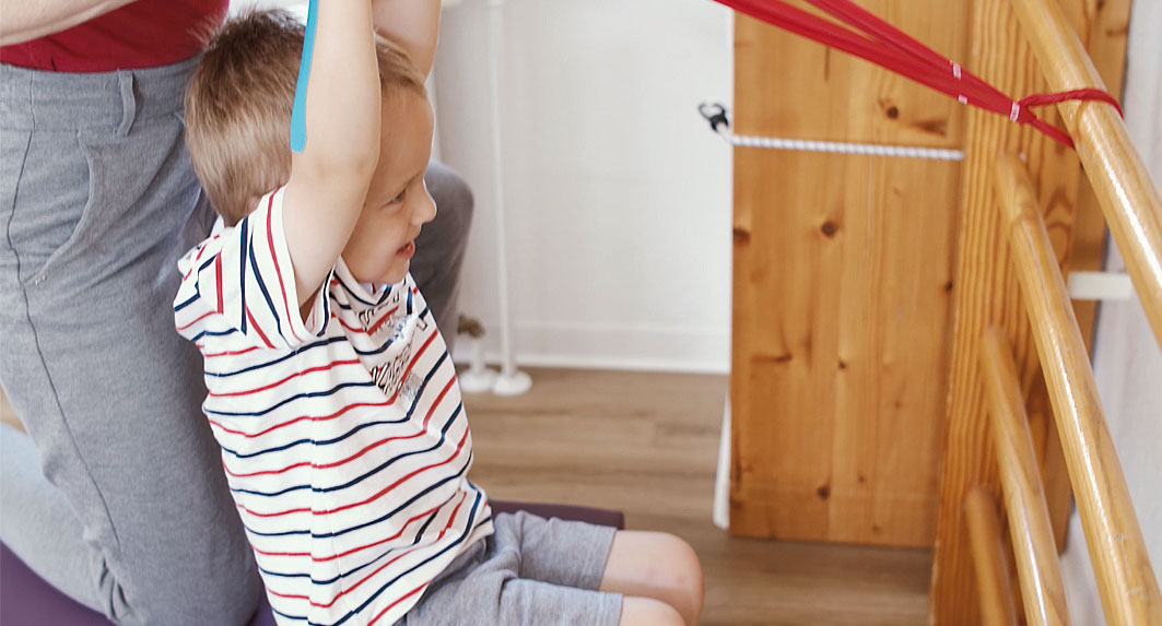 Eltern unterstützen die Krankengymnastik Zuhause...